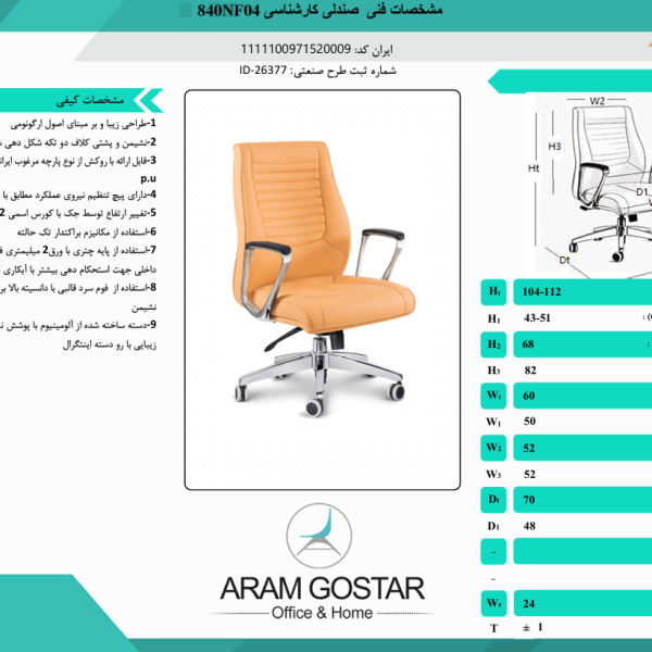 صندلی کارشناسی اروند 5712 کد 1139