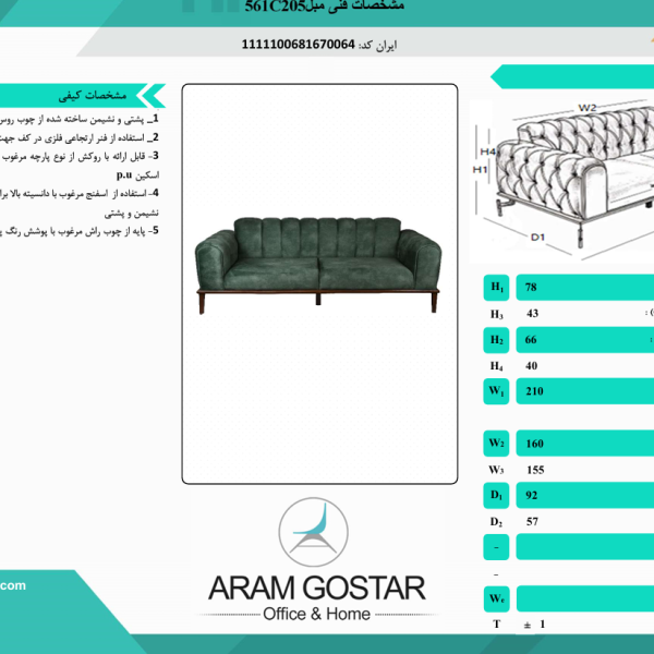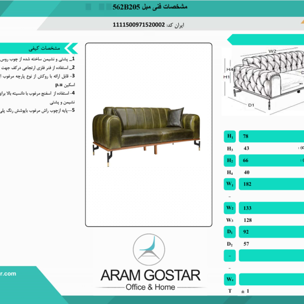 مبل اداری سه نفره پارلا 561C205 کد 1056