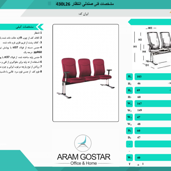 صندلی انتظار دیاکو 570MG68 کد 1041